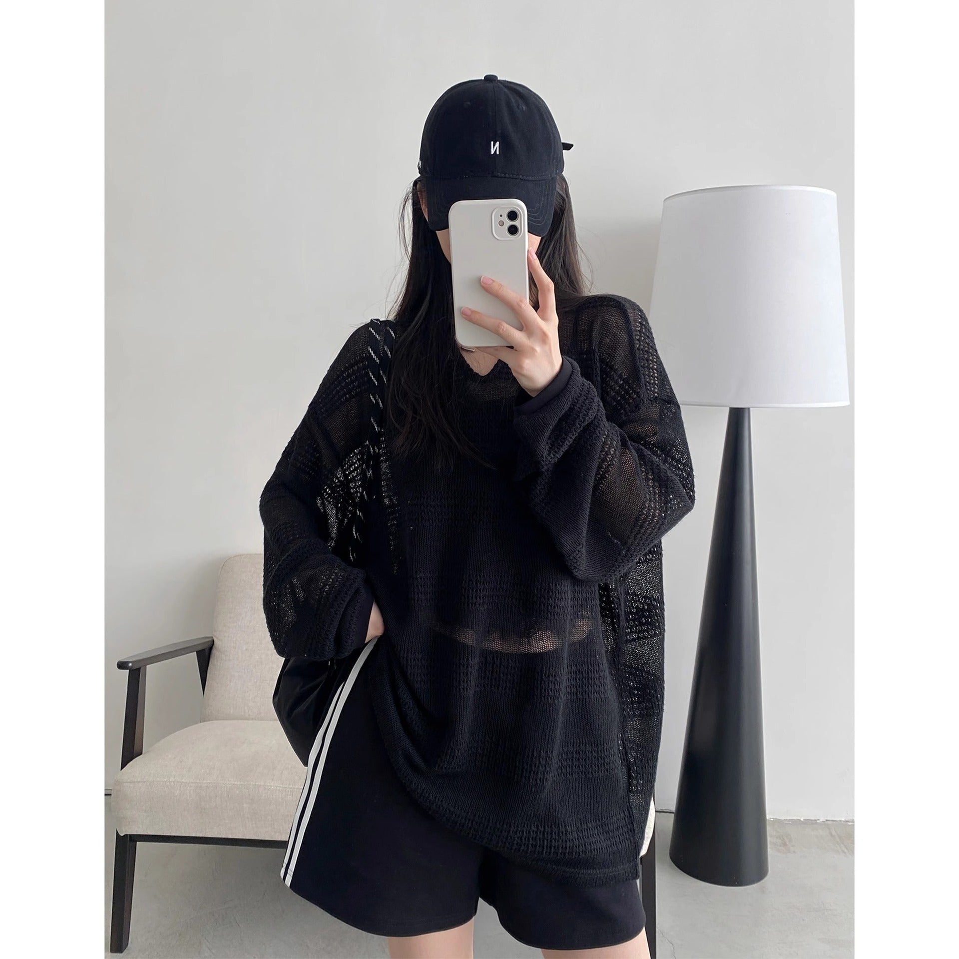 2025 summer new American sun protection clothing cutout blouse women's loose and lazy style design long sleeve T-shirt top