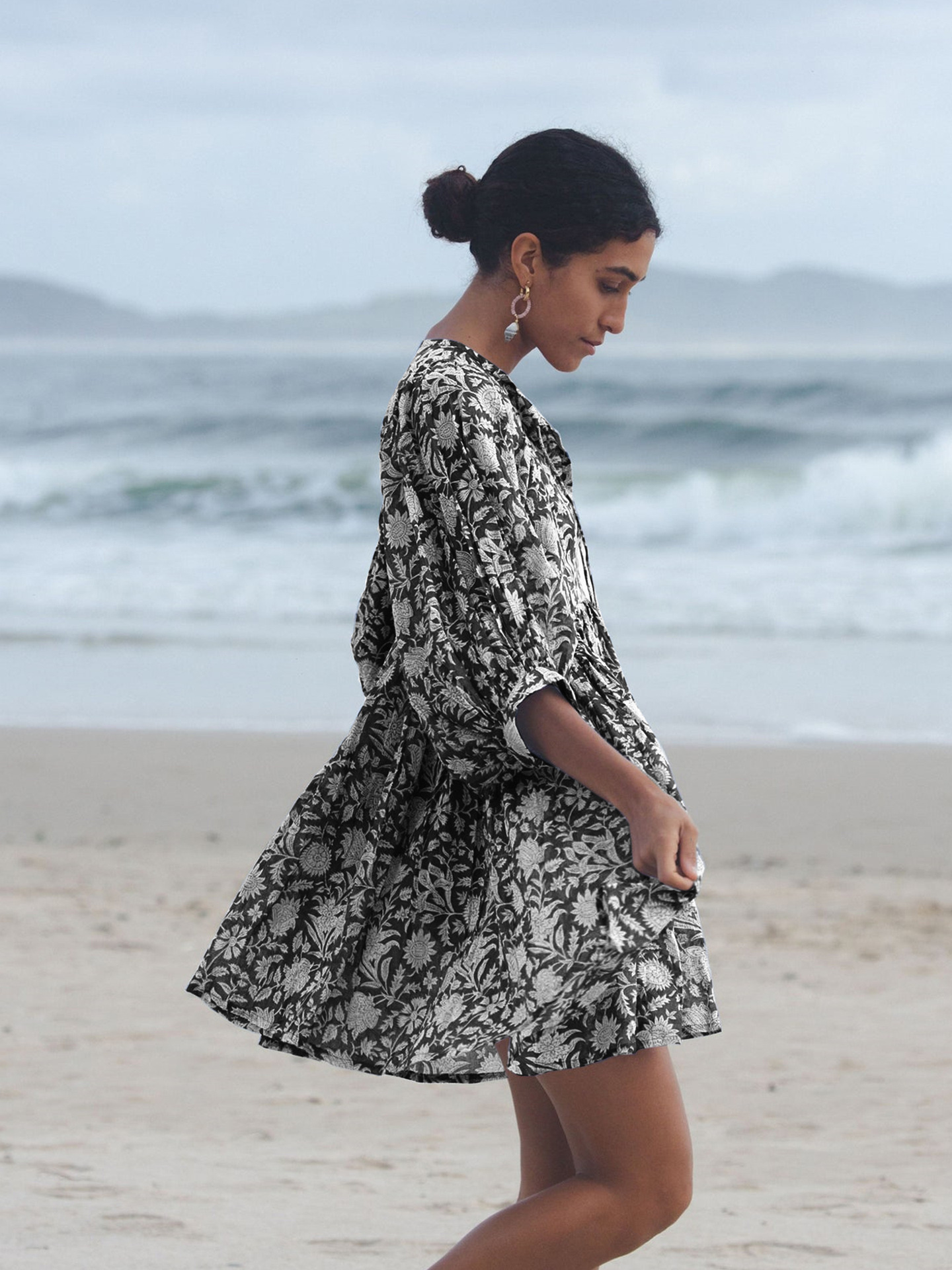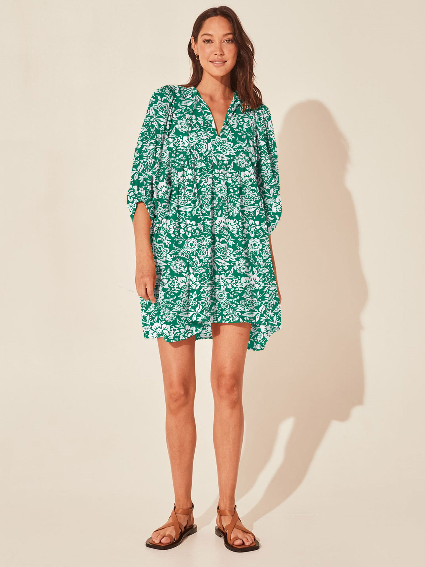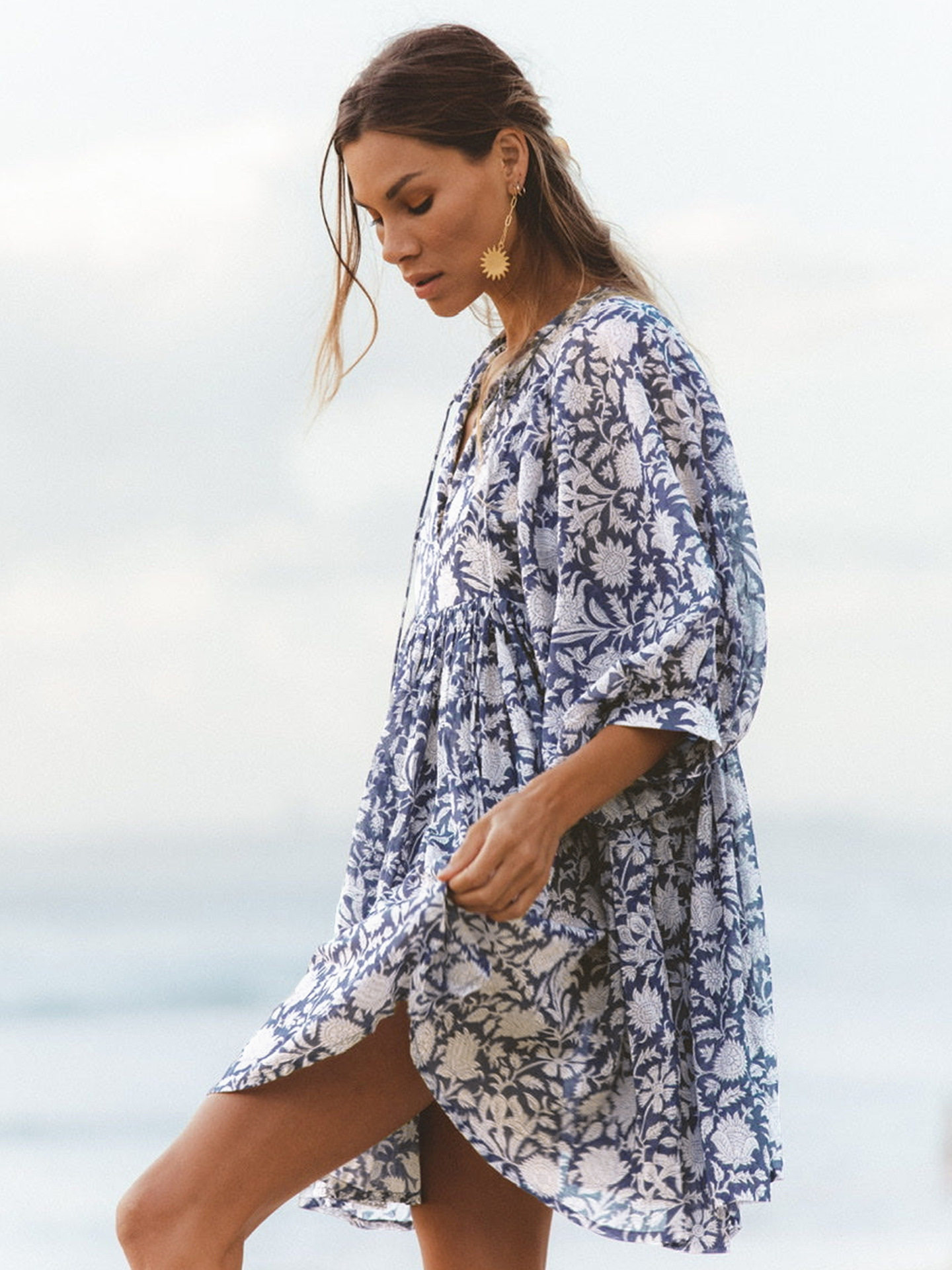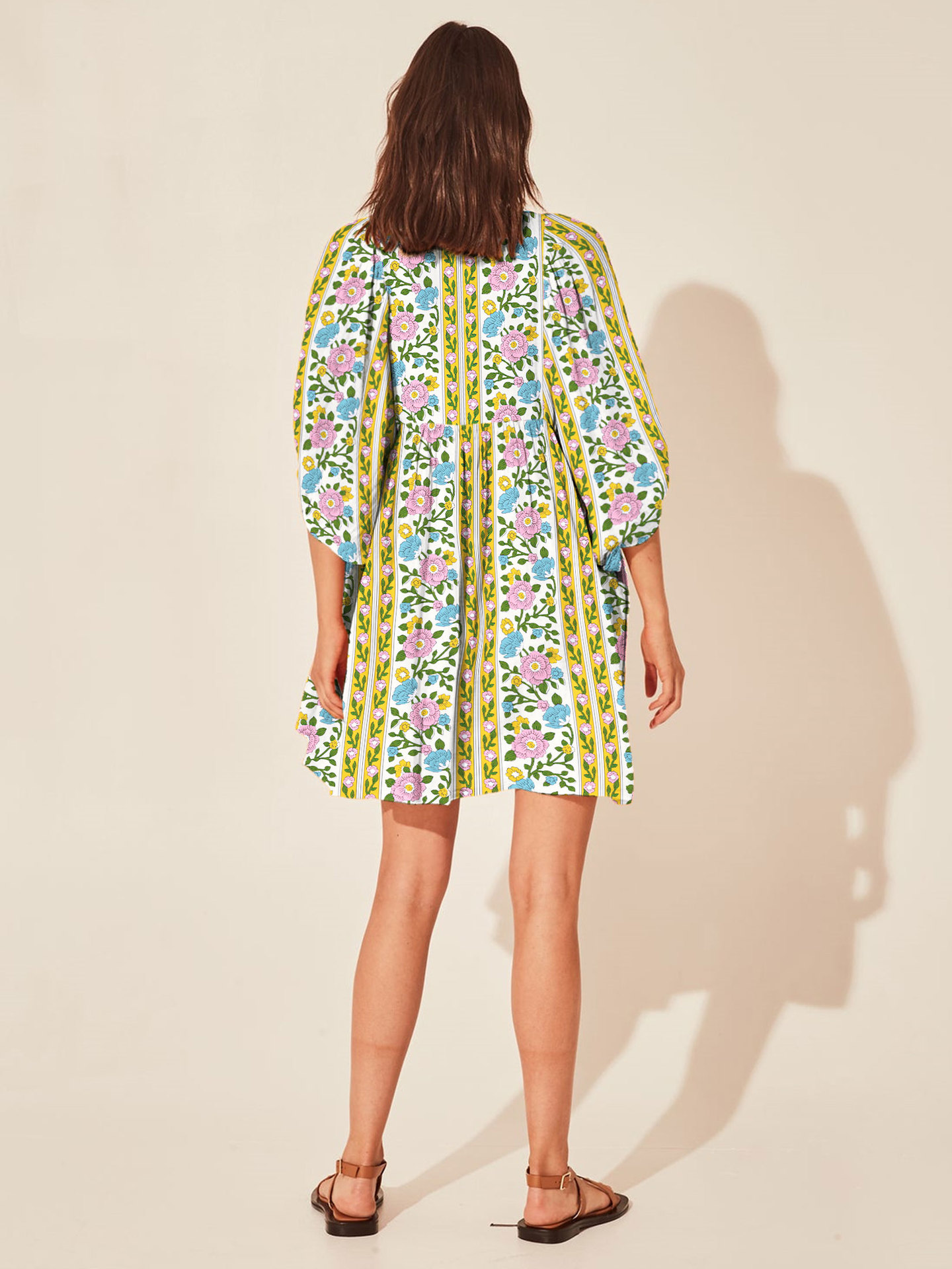 Amazon hot vacation style dress loose casual print short skirt high waist lace-up floral skirt beachwear women