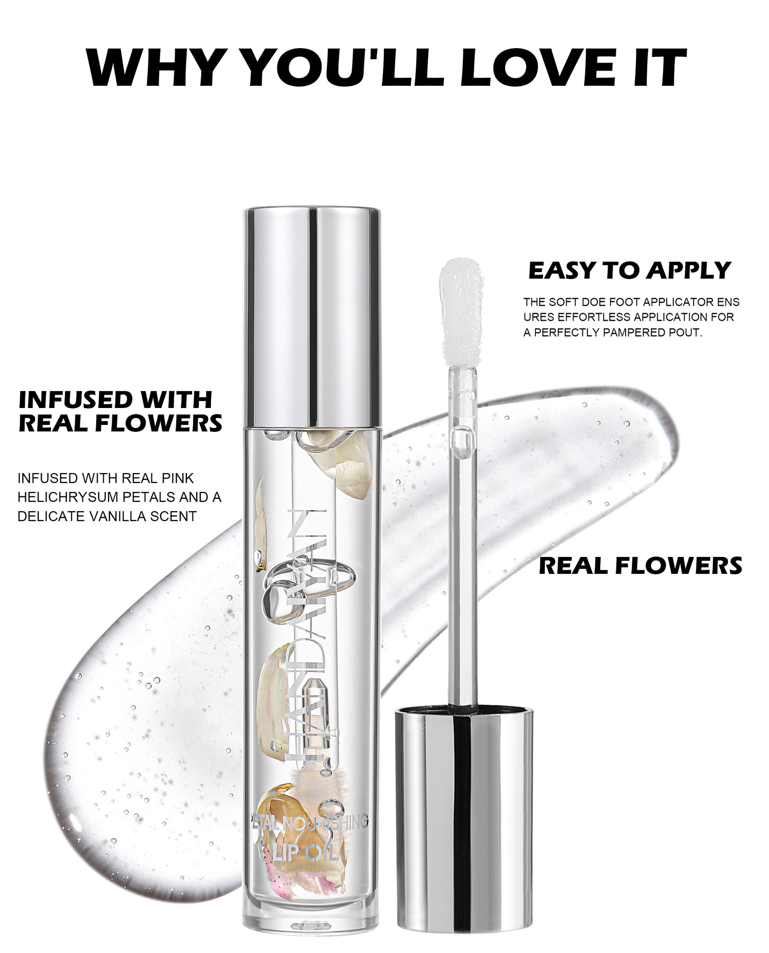handaiyan cross-border transparent dried flower lip gloss mirror water light lip gloss lasting nourishing moisturizing Pearl lip gloss
